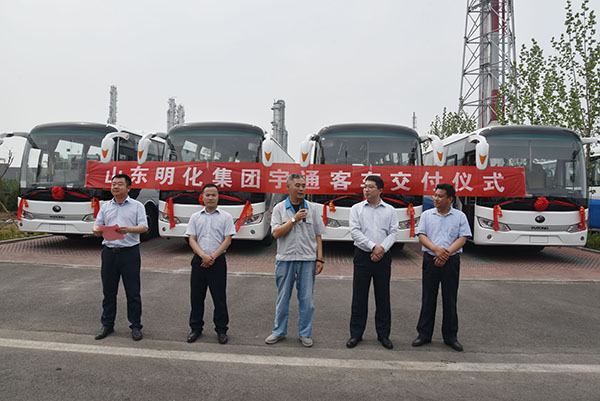 赵中志代表宇通公司将车辆钥匙移交给集团车辆管理代表王洪波。孙志田在交接仪式上讲到,此次与宇通公司的合作,正值明化建企60周年,新能源班车对于焕发新青春的明化来说也是一种全新的体验,同时也再次体现了集团“搭建平台 整合资源 科学发展 诚信共赢”的发展理念。新能源班车投用后,一是要求综合办要坚守好职责,做好车辆运营的各项工作,充分发挥新能源班车的绿色、节能、安全、高效的特性;二是要不断强化安全运行,切实保证车辆交通安全;三是要不断提高管理水平,保证车辆高效运行,全面提升企业形象。吴国亮作为车辆管理单位作出表态发言。