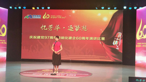 本次演讲是“忆芳华·逐梦想”征文演讲活动的一项比赛,是明化建企60周年庆典系列活动之一。前期“忆芳华,逐梦想”征文大赛,真实而详细地还原了我们在前进过程中的奋斗和温情。一百多篇征文,或隽永深刻,或激昂澎湃,或秀美舒缓,或亲和温暖。字里行间,无不透露着明化人的眷恋和亲情,读来震撼而感动。演讲选手的部分稿件为前期征文比赛的获奖作品,此次通过演讲的形式赋予了文字灵动的色彩。
