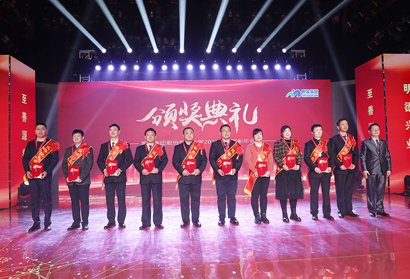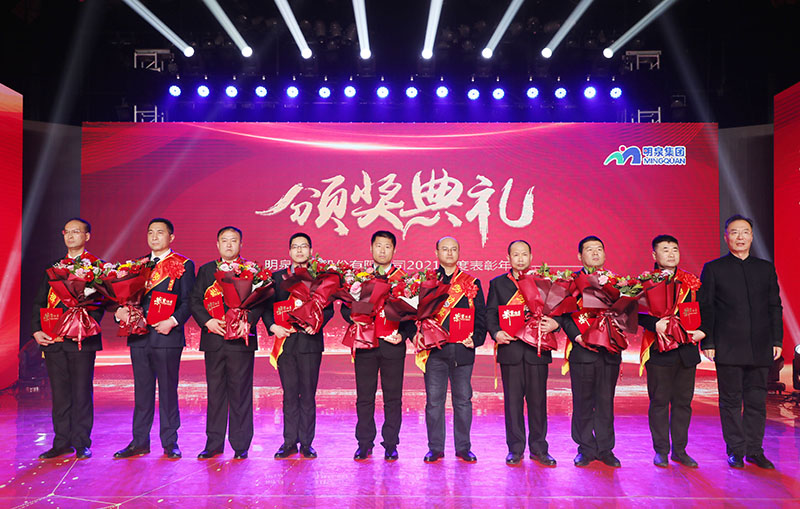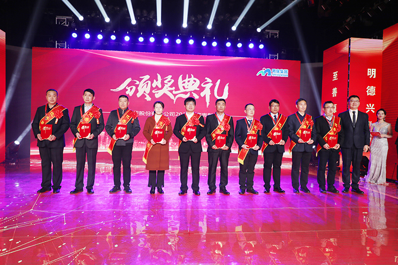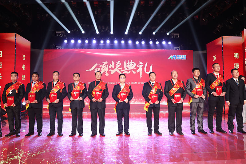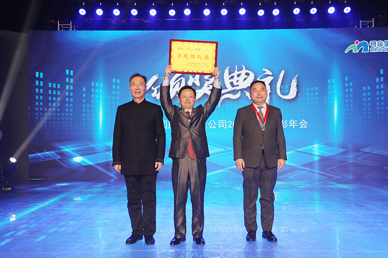 与会人员共同观看了集团2021年度工作回顾视频《勇毅前行筑基础 发力高端向未来》。集团总裁孙志田宣读了《sunbet申搏关于表彰2021年度优秀集体、优秀个人的决定》,隆重表彰了2021年度涌现出的35个优秀集体和491名优秀个人。吕民松、孙洪海、孙志田,集团董事张圣成、刘文举、任冰涛、李光,集团监事韩加强、蔡力、刘洋,分别为集团2021年度先进集体、先进个人以及明士新材料公司获奖者颁奖。