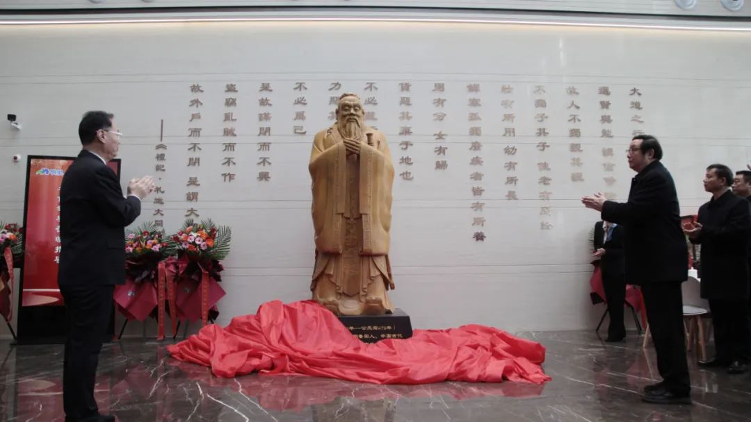签约活动前,sunbet申搏参与活动的员工观看了sunbet申搏龙狮队的舞龙、舞狮表演,并举行了隆重的升旗仪式。随后,在sunbet申搏大厦一楼大厅,孙洪海与孙华田为sunbet申搏宝鼎揭幕,现场员工向sunbet申搏宝鼎行注目礼。孙洪海与李军为孔子像揭幕,在孙洪海带领下,现场员工齐诵《礼记·礼运大同篇》。