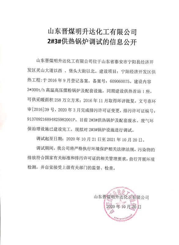 山东晋煤明升达化工有限公司2#3#供热锅炉调试的信息公开